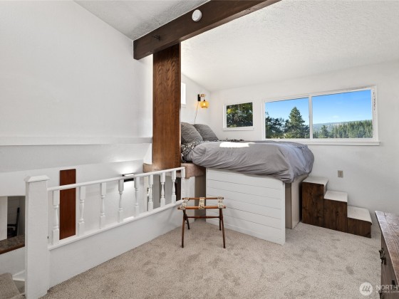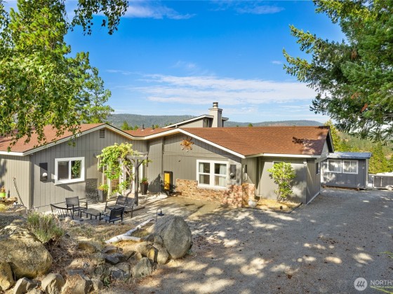 Welcome to this gorgeous, updated 2,120 sqft home on nearly 0.5 acre. The spacious kitchen features expansive windows framing stunning views, vaulted ceilings, new light fixtures, butcher block countertops, cozy sitting area, + inviting dining space. Fun loft bedroom adds character, while the main living room’s cozy fireplace sets the tone for relaxation. A versatile bonus room w/gas fireplace can serve as hobby space, gym, or extra living space. Throughout, the home radiates a modern, chic vibe that’s truly unique. Outside, enjoy large garage, beautiful shed, + brand-new deck to soak in the breathtaking views. Located in a community w/2 lakes, a pool, + clubhouse!