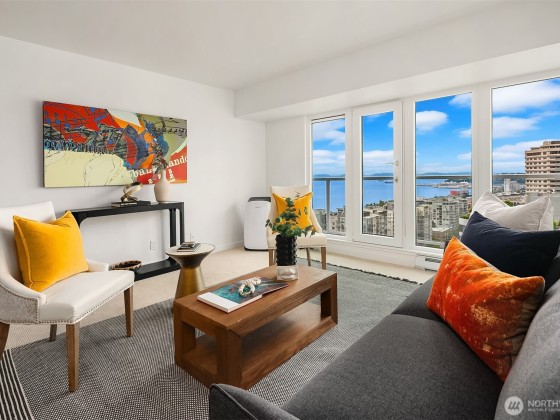 Downtown is making its comeback and you need to be a part of it. New restaurants & old standards are alive with energy. Shopping, movies, arts, theater, sporting venues, and the new Waterfront Park are happening and this one bdrm NW view condo is right in the middle of it all. Open floor plan provides stunning everyday views throughout the home including amazing sunsets and active City/Elliott Bay/Sound vistas. Newer kitchen w/ SS appl. & new carpet/paint awaits you. Lobby entry & 24/7 concierge. Resort style amenities include 4 view decks offering BBQs, entertaining space, and 360 degree views; owner's lounge/ club room, fitness center, indoor pool/hot tub/sauna, & guest suite. Pet friendly. No rental cap.1 car secure parking & storage.