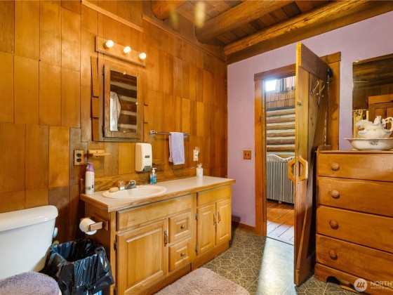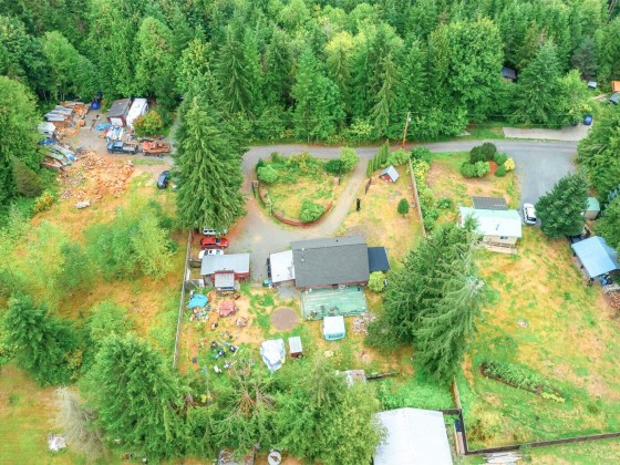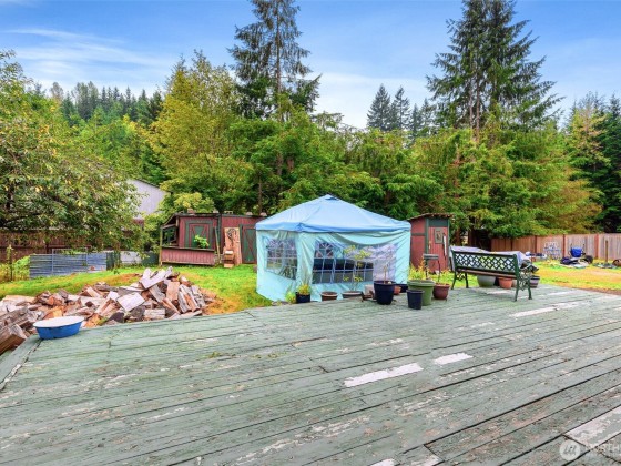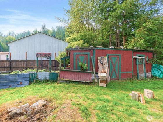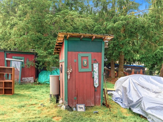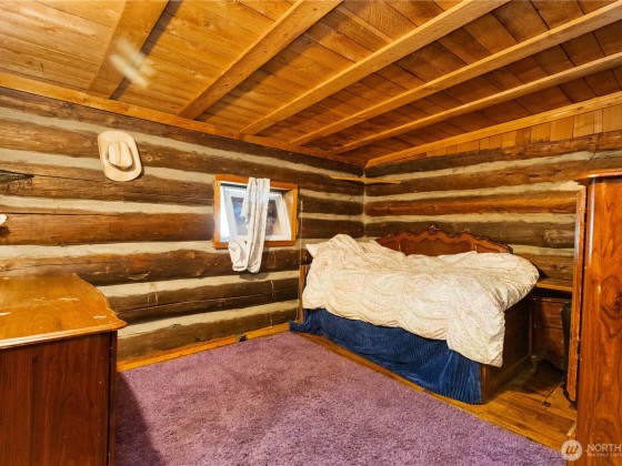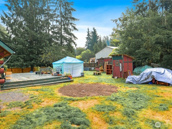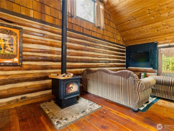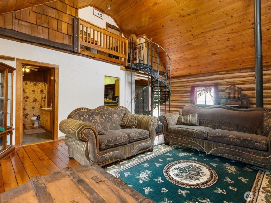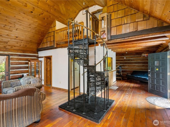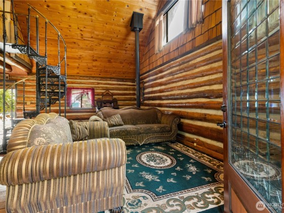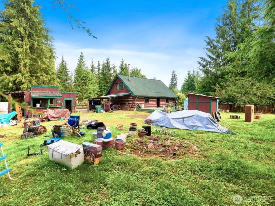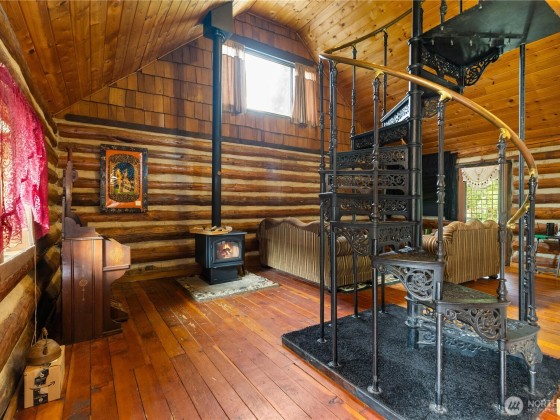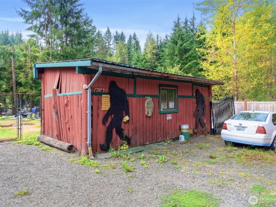 One-of-a-Kind Log Cabin with Bigfoot Flair in Granite Falls. Nestled in the foothills, this two-story tamarack log cabin was once home to the author of Bigfoot: Myth or Reality. Bigfoot greets you at the gates & stands watch at the entrance, setting the tone for a property like no other. Inside, a circular ornate staircase links the main level bedroom, full bath, & living space w/a loft above. Built from Alaska’s toughest tamarack wood, the cabin combines rustic strength with timeless charm, enhanced by a new roof and chimney. On a quarter-acre cul-de-sac lot in River N Forest, you’ll find multiple outbuildings—including a children’s cabin, saloon-style shed, storage, & wood shed—plus room to grow vegetables in a peaceful, private setting.