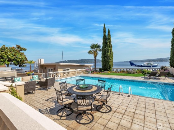 Call about Rate Buydown! Discover luxury living on Lake Washington with this custom-built Hawaiian paradise. This stunning lakefront home features 33ft ceilings and incredible views from every room, perfect for enjoying sunsets. The open floorplan seamlessly connects indoor and outdoor spaces, ideal for entertaining. Enjoy sweeping staircases, heated floors, custom murals, a secret room, an in-ground pool, new hot tub, a boat dock with lift and the option for an elevator. The primary suite offers stunning views from bed and a private balcony, while the gourmet kitchen boasts Dacor appliances, a massive island and a Butler's pantry. For convenience, there's a helipad on the fully finished boat house, a finished 2-car garage and gated entry.