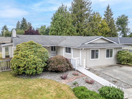 Welcome home to this 3-bedroom, 1-bath rambler with added bonus room in downtown Enumclaw! Offers easy access to shops, dining and local amenities. The home is updated with ADA-friendly features, including an accessible driveway, walkway, entry and bathroom for enhanced convenience. Spacious layout with fresh interior paint, a cozy gas fireplace and a versatile converted space perfect for additional bedroom or bonus room. Large front deck with French doors creates an inviting indoor-outdoor living, ideal for entertaining or relaxing. Sunroom or greenhouse! Fully fenced with plenty of room for RV parking, patio area and garden space is ready for planting. Great views of the foothills!