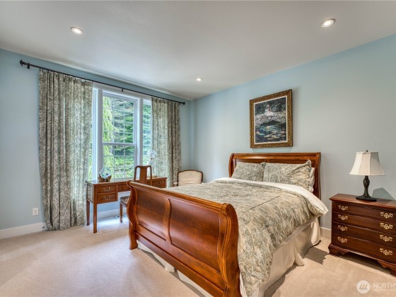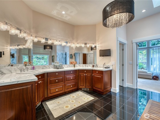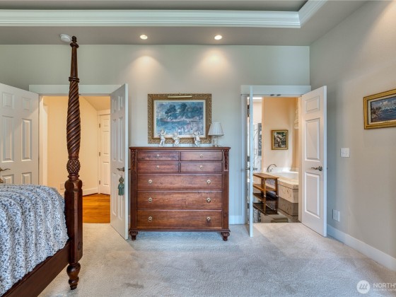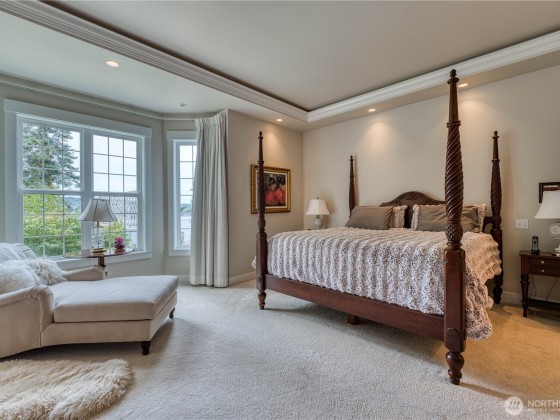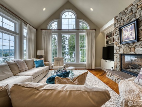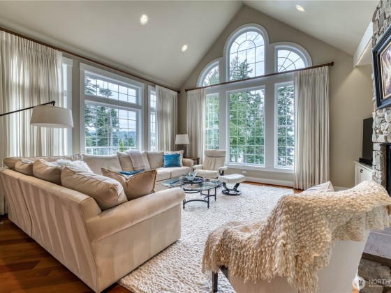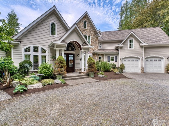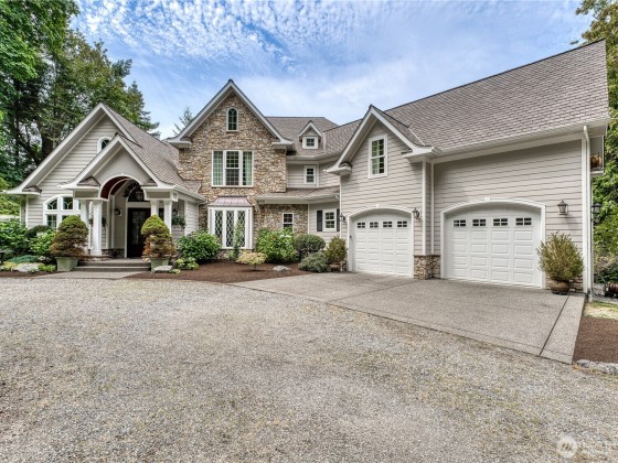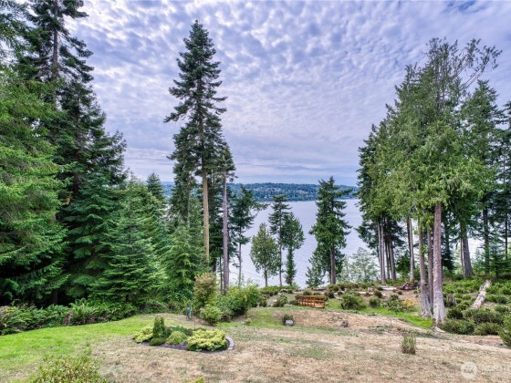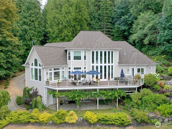 Stunning luxury home with majestic views of Port Ludlow Bay! Thoughtfully limbed cedar and maple trees reveal sweeping vistas from this serene medium-bank waterfront setting. The spacious primary suite on the main floor offers direct access to a private jacuzzi—perfect for soaking in the views. Designed for comfort and elegance, the home features an open layout and refined coastal finishes. An unfinished basement with garage door access offers versatile space for a workshop, a small boat, or an extra vehicle. Gated entries to both Tala Point Estates and the property, plus a grand tree-lined driveway, complete this exceptional retreat. Freshly added driveway rock surrounded my meticulously designed landscape throughout the property.