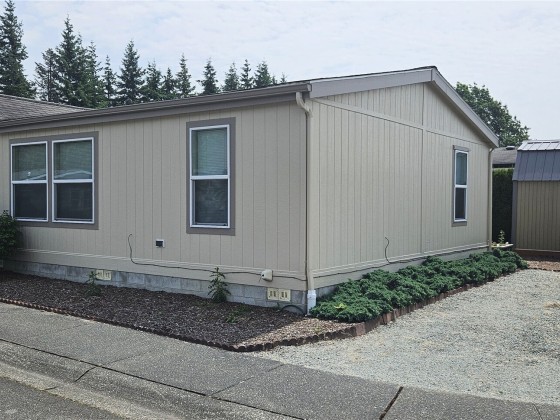 Like new 2014 Double wide home located in premier 55+ park in Sedro Woolley. 3 bedrooms, 2 full baths, and open and bright floor plan. Spacious kitchen with oak cabinetry and abundant storage. Large primary bedroom with walk in closet and adjacent full bath. 2 additional medium sized bedrooms with shared bath. All appliances are included. Separate laundry room. Outside is a low maintenance lawn and includes a carport, 2 storage buildings (4x10 and 8x12) and one extra parking space. Community features available storage units, RV parking, clubhouse, and community park. Park is centrally located near all services and recreation.