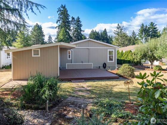 Premier Senior Living! 1782 SF home featuring fresh paint both inside & out and Heat Pump. The expansive kitchen has white cabinetry with solid surface counters, stainless steel appliances & sunny breakfast nook. Primary bedroom includes large walk-in closet & ensuite bathroom w/walk-in shower & soaking tub. Updated guest bath has new walk-in shower. Outdoor amenities include a private backyard with fruit trees, a deck, and serene sitting area nestled among the trees. Additional highlights are a covered deck in carport & finished 30x10 shop complete w/3 skylights, ample cabinetry & sink. Silverdale Estates is a 55+ community with a clubhouse, indoor swimming pool, hot tub, sauna & more. Close to shopping, restaurants & medical facilities.