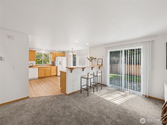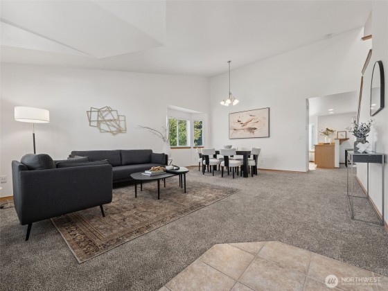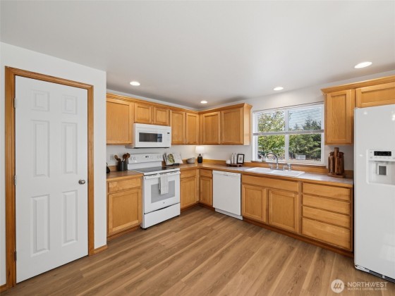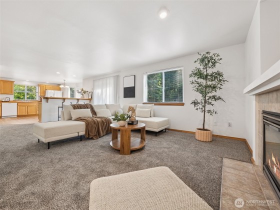 Resting on a large corner lot. An exceptional open & airy home. Thoughtfully designed home offers the perfect blend of comfort & flexibility. Spacious entry w/ formal living & dining room. Soaring ceilings, tons of natural light, skylight & large windows. The open floor plan features a family room w/ gas fireplace & slider to large fully fenced yard. Spacious kitchen w/ plenty of counter space, all appliances, breakfast bar & casual eating nook w/ bay window. Current updates, new carpet, pad, laminate vinyl flooring, freshly painted inside & out plus beautiful landscaping. 4 spacious bedrooms upstairs, primary w/ soaking tub, walk-in shower & walk in closet. Laundry room/mud rm off garage. Excellent location & Tahoma Schools! Move in ready!