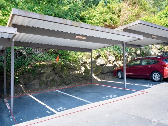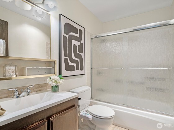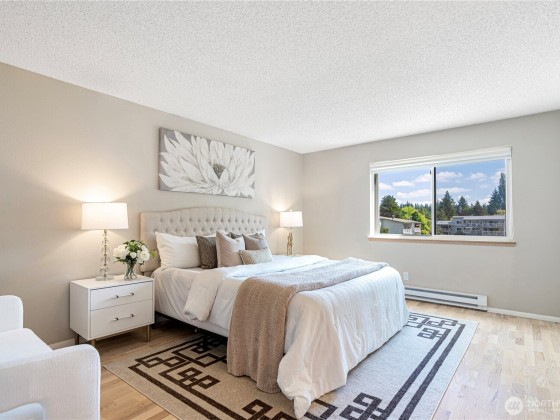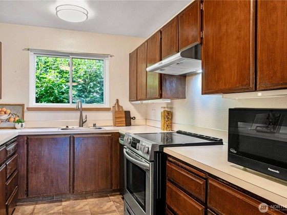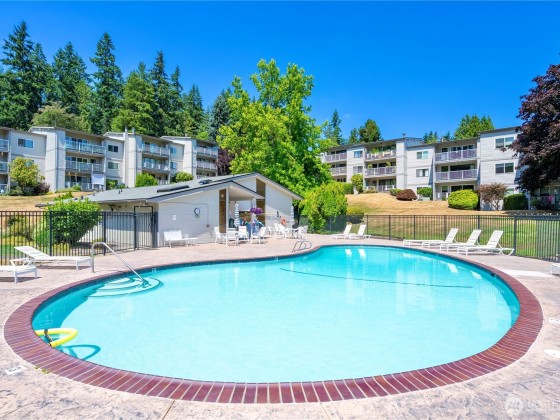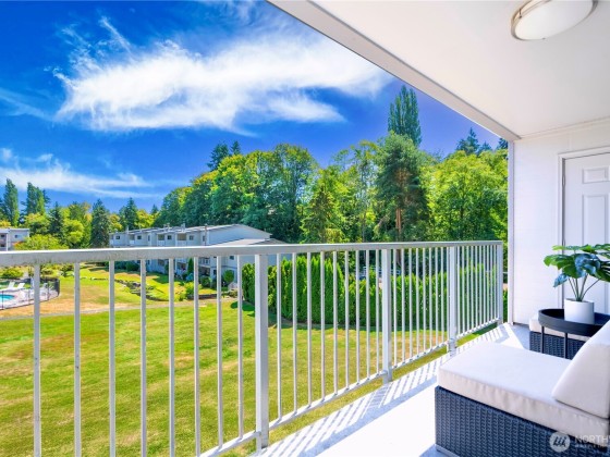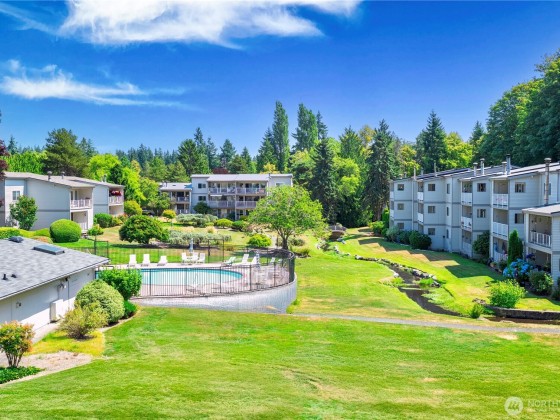 Seller offering 6 months of HOA dues credited at closing! Welcome to Bridgehaven Condominiums, where comfort meets convenience. This mid-level unit offers ease with no stairs and ground-level entry. It features a functional layout with updated kitchen appliances including dishwasher, range/hood, and microwave. Newer windows and a recently replaced water heater add value. Step out to a private balcony with peaceful territorial views—perfect for relaxing or entertaining. Enjoy 2 covered parking spots and in-unit laundry. Set on landscaped grounds, the community features pool, hot tub, sauna, and clubhouse. Ideally located near Jackson Park Golf Course, trails, shops, light rail station, and with easy access to I-5.