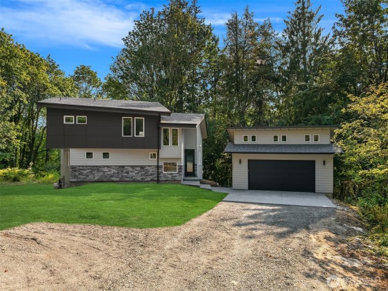 Modern Design NEW construction on 5 acres on the top of the hill."Country Roads, take me home to the place I belong". With apologies to John Denver but that song personifies the lifestyle that awaits the soul searching buyer needing the quiet, private , natural and sensory lifestyle. Tired of watching your neighbors cook breakfast or listening to their loud tv?? Take the country road to a modern Great room concept 3 level home. Enjoy nature from a wraparound deck with cable rope (to keep view open). Brand new quartz kitchen with eating island. Plenty of room; 3035 sq ft of elegance. Elegant primary bath with quartz counter, soaking tub. double vanities. High efficiency Minisplits for cooling in Summer and cozy warmth in winter.
