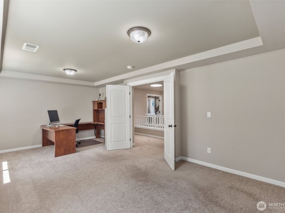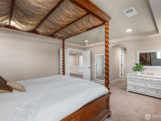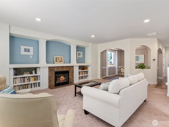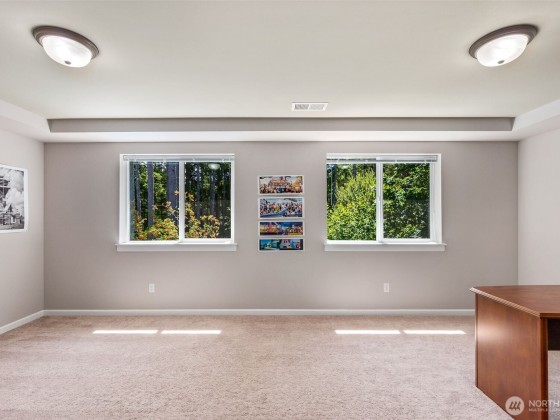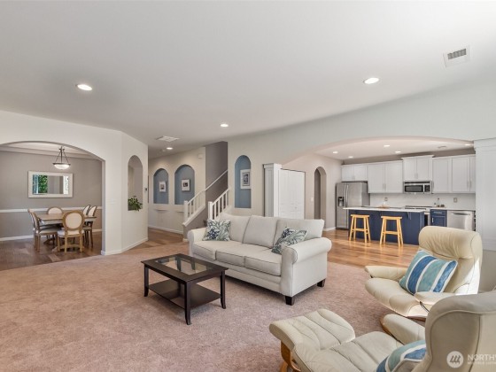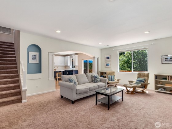 Step into this inviting home with graceful arches, high ceilings, and peaceful views of surrounding greenery. The updated eat-in kitchen with custom quartz counter tops flows into an open dining and living space, ideal for everyday living and entertaining. A main-level office and spacious upstairs bonus room offer flexibility for work or play. Walk out to the expansive deck overlooking green space, perfect for relaxing or gathering. This home has been meticulously maintained with regular professional servicing throughout single ownership. Located on a quiet cul-de-sac with ample parking, a neighborhood park, and easy access to Hwy 101, Evergreen State College, and trails at Grass Lake Nature Preserve. *Sellers offering an 8k buyer credit!*