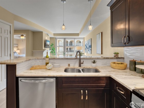 Remodeled condo in the desirable Astoria Building in Old Bellevue. Steps away from boutique shops, top restaurants, and gorgeous parks. Walking distance to downtown offices and transit. Open concept living & dining area boast expansive and bright floor to ceiling windows. The bathroom and kitchen are finished with high end touches. The well managed building offers secured entry and parking spaces with storage space.