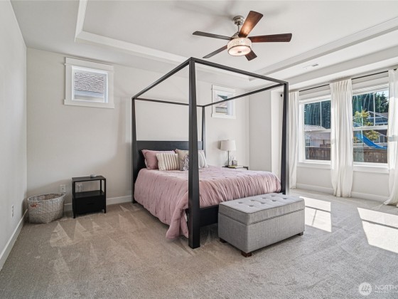 Live the dream in the Estates at Summer Lane! Master suite on the main for ultimate convenience, paired with a light-filled, open layout designed for entertaining. The gourmet kitchen shines with a gas stove and two ovens—perfect for chefs and party hosts alike. Upstairs offers a versatile bonus room or extra bedrooms, plus a private office for work or hobbies. A detached garage with breezeway adds charm and function. Step outside to enjoy community parks, playgrounds, and trails—all just minutes from The Village at Chambers Bay!