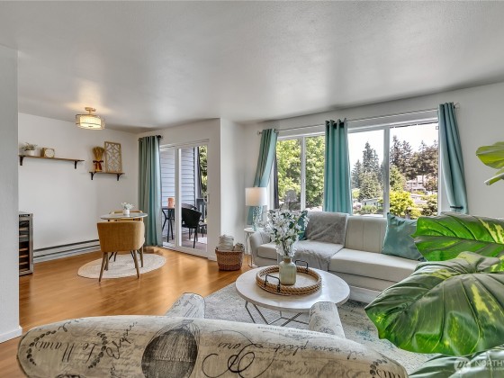 Beautifully Remodeled & Fully Furnished Top Floor View Gem! Perfectly appointed along the picturesque Sammamish River that gracefully feeds into LK Washington for your kayaking & water activities. You'll love this modern & spacious lifestyle offering a blend of comfort, luxury, natural beauty & convenience. A well maintained HOA featuring LOW DUES that are hard to find! Amenities include waterfront access from the private dock, ALL NEW BUILDING PLUMBING/PAINT, community sauna, multiple sitting decks, a 1 deep car garage & extra storage. Located in the heart of the Kenmore Vibe featuring the scenic Burke-Gillman Trail just 1 blk away, a short distance to restaurants, pubs, parks, schools & easy FWY access for commuters. Location! Location!
