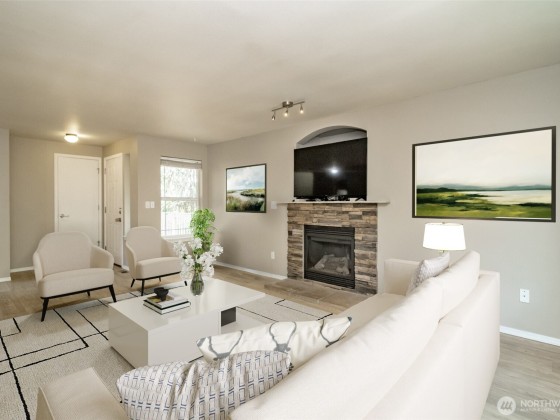 Welcome home to this beautifully maintained 4-bedroom, 2.5-bath home in Fife! Inside you'll enjoy fresh LVP flooring, new carpet, and a cozy gas fireplace. Upstairs features a spacious primary suite with private bath & walk-in closet, additional generously sized bedrooms, and a convenient laundry area. Recent updates include new fence (2021), water heater (2022), plus 50-yr roof & solar panels (2022) that keep electric bills low at just $28–$68/mo! Step outside to your private backyard retreat, complete with a firepit, retractable awning with wind sensor, and natural privacy from the surrounding rock wall and greenery—perfect for relaxing or entertaining year-round. Pre-inspected for your peace of mind, this home is move-in ready!