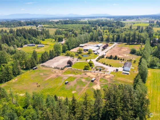 Welcome to Burkwood Farm, currently a Hunter Jumper equestrian facility on 18 acres located between Blaine & Lynden WA. 36 stalls total, multiple stalls w/runs, 2 barns, 120'x60' covered indoor arena & 250'x175' outdoor arena, fenced & cross fenced. Loafing sheds with pasture space, separate hay storage, covered shaving bin, heated indoor & outdoor wash rack, 2 tack rooms +grain room. 12 large pastures including 8 gravel turnouts for winter months & 5 grass paddocks for summer months. Outdoor track & ponds. Grand home offers 4+bedrooms, updated kitchen & multiple living areas. Paved driveway & gated entry for added security. Private & serene farm quietly tucked away S. of Vancouver BC & N. of Seattle with close I-5 access.