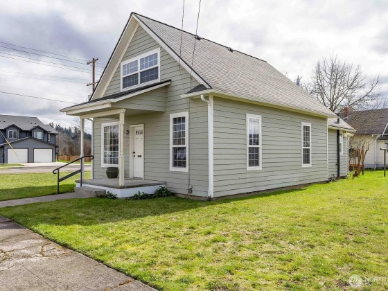Charming 3-bedroom home with bonus room on a spacious corner lot in a quiet neighborhood. This clean 1,400 sq ft two-story blends vintage character with modern updates, including an upgraded kitchen with cherry cabinets. Bonus room upstairs offers flexibility for office or guests. Enjoy a versatile back porch/laundry area, and a spacious, well-maintained single-car garage in great condition. The lawn is tidy and inviting. Conveniently located near a hospital, college, shopping center, and everyday amenities—perfectly centered between Portland and Seattle. Newer duplexes nearby add long-term value
