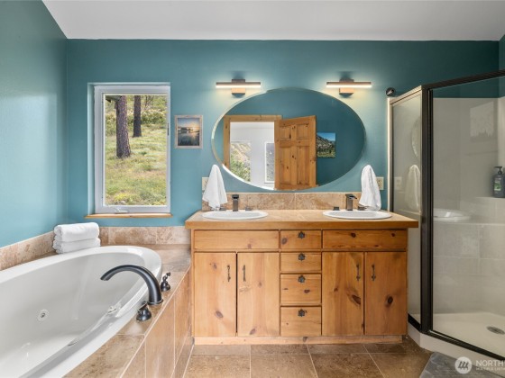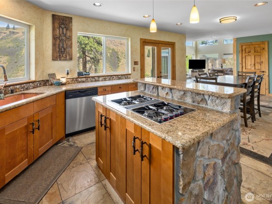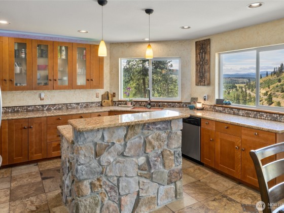 Welcome to your dream retreat! This stunning 14.92-acre property offers privacy, panoramic views of the Yakima River, + access to Palouse to Cascades Trail + world-class blue ribbon fly fishing-right out your back door. The custom-built cedar home boasts vaulted ceilings + breathtaking rock fireplace that’s perfect for cozy evenings. The gourmet kitchen features granite countertops, copper farmhouse sink + walk-in pantry. Cedar half-log stairs lead to a charming loft + spacious bedrooms. The primary suite includes balcony, fireplace, walk-in closet, + spa-inspired bathroom. Step outside to enjoy a stamped concrete patio, irrigated yard, fruit trees, + raised garden perfect for entertaining, or simply taking in the beautiful surroundings.