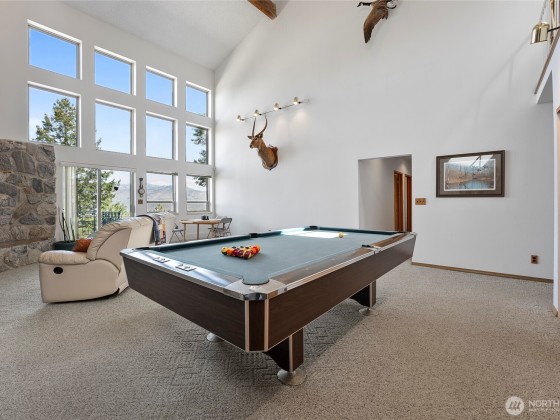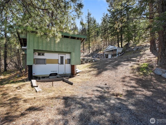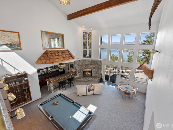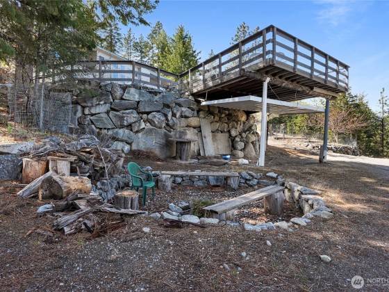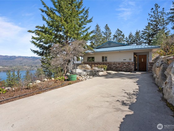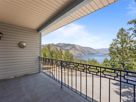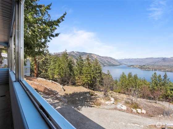 THESE VIEWS ARE PHENOMINAL!! Look up the lake toward Stehekin, down the lake toward Chelan, across the lake toward Manson, and 360 degrees of spectacular mountain sides. Very well-built home on Bear Mountain. Easily accessible (year-round) for boats, RVs, Off Road vehicles, and heavy equipment if necessary. Well landscaped with rock wall terraces and fire protected terrain. Soccer and volleyball sport court. "Glamper" nested between the trees provides camper's ambiance. Covered Hot tub off the Primary bedroom. Entertainment room with full bar, fireplace, pool table and poker table. Custom kitchen with built-in, pull-out table leads into a quiet tv room with large outer deck for eating outdoors while watching sunrises and sunsets.