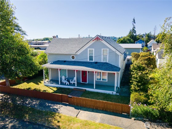 Beautifully updated 4-bedroom, 2.25-bath home on a large corner lot. Features include a remodeled open kitchen, new flooring, and fresh carpet throughout. Stay comfortable year-round with an energy-efficient heat pump for heating and cooling. Enjoy outdoor living on the new covered deck—perfect for relaxing or entertaining. An impressive 1,400+ sq ft detached 4-car shop/garage offers ideal space for a mechanic, hobbyist, or anyone in need of serious workspace or extra storage. With convenient access to downtown amenities and potential for commercial zoning, this property offers both lifestyle and investment appeal. Buyer to verify all.