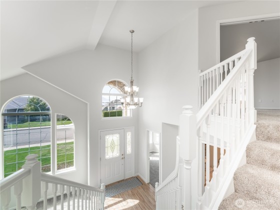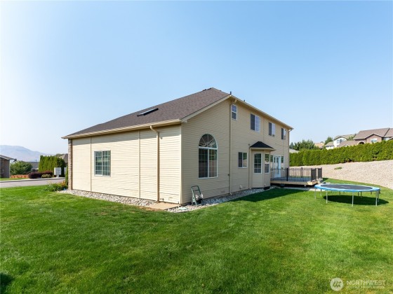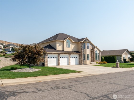 This beautifully updated Briarwood two-story is available for the first time. The home features new flooring, granite counters, and stainless steel appliances. Throughout the home, you will enjoy tall ceilings, natural light, and detailed craftsmanship. The main level conveniently includes an office, a full bath, a living room, and a great room. On the upper level, you will find the primary bed & bath, along with three additional bedrooms. The primary bathroom offers split vanities, a soaker tub, and a standalone shower. Enjoy mountain views upstairs, as well as dining and entertaining options on the deck on the lower level. The backyard is spacious with low-maintenance landscaping. There is plenty of parking space in the three-car garage.