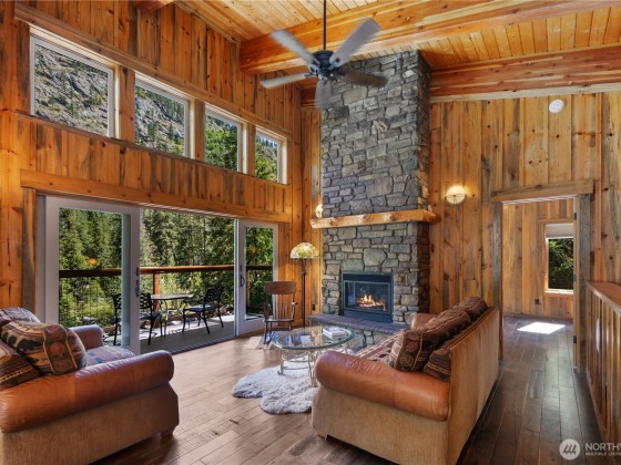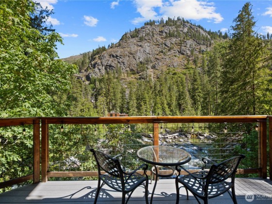 Beautiful 4 Seasons cabin nestled on the banks of the Icicle River. Step into this 1840sqft marvel featuring soaring vaulted ceilings, a gorgeous stone fireplace and a wall of windows framing all the breathtaking views that surround this mountain beauty. Offering a primary ensuite and 2 additional bedrooms, creating space for all of your gatherings. Imagine relaxing nights by the fire while the sun dances on river flowing by. 2 car garage, detached carport and private river access. Enjoy Hiking, Fishing and More just minutes away at Alpine Lakes Wilderness area and 1/2 hour to Stevens Pass for all your winter fun. Right outside charming Bavarian Leavenworth village, this home blends convenience with adventurous getaway living.