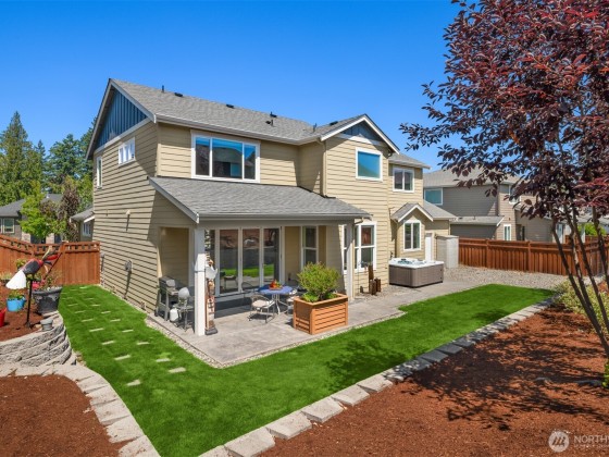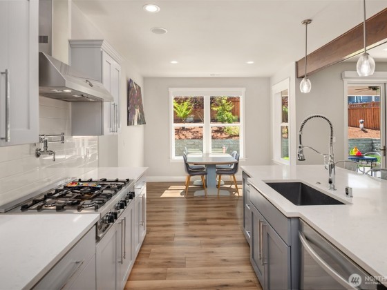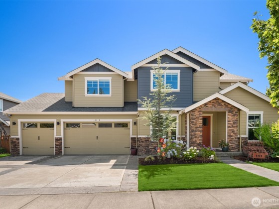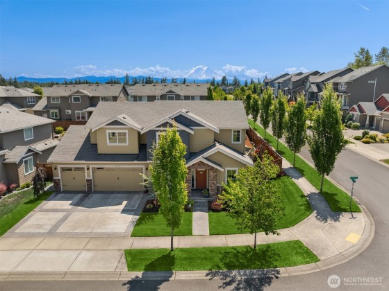 Nestled on a desirable .2 acre corner lot in Inspiration Ridge at Tehaleh, this grand 3065sf 2-story with dream 4-car garage hails as Noffke's flagship model home with over $100k in high-end luxury upgrades! Stunning NW Contemporary style with impressive curb appeal. The spacious open-concept showcases tall ceilings, soaring foyer with open rail balcony & upscale finishes throughout. Dramatic kitchen with Bertazzoni appliances, 72" fridge, butlers pantry & center island bar opens to huge family room with beamed-ceilings, gas fireplace, custom built-ins & expansive folding glass wall to stamped concrete covered patio. Primary oasis with lavish 5-piece spa & double walk-in closet. Prime Bonney Lake Schools! *1% 1-Year Rate Buy Down at NO COST