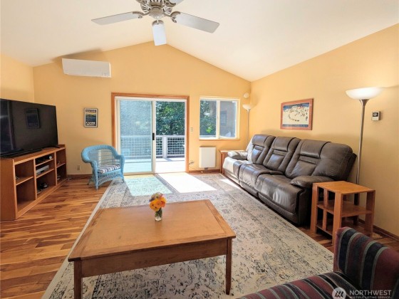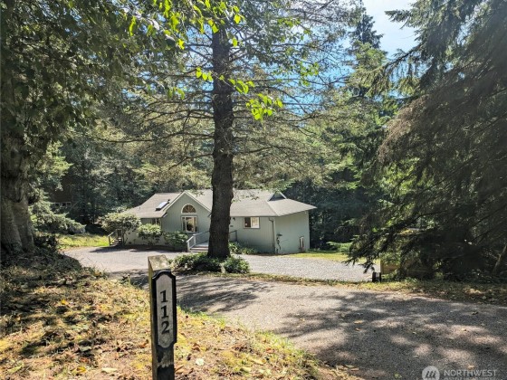 Immaculate condition home located in the Orcas Highlands. Sunny, south facing with mature trees creating a forested feeling. This home features a primary suite and two additional bedrooms with a full shared guest bath. A central great room with vaulted ceilings, acacia wood floors, propane fireplace and large windows to the south, makes for a wonderful gathering place. The kitchen is updated with custom cabinets made from birch and maple. Don't miss the creative toe-kick storage drawers! Newer stainless steel appliances, travertine floors and granite countertops make this kitchen a chef's delight! Newer paint and 3 decks with Trex boards for easy maintenance. Leaf guard gutters. Fiber connected. EV charger. Basement w/ roughed in plumbing.