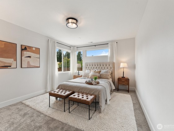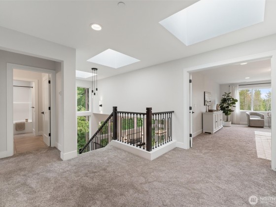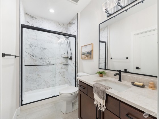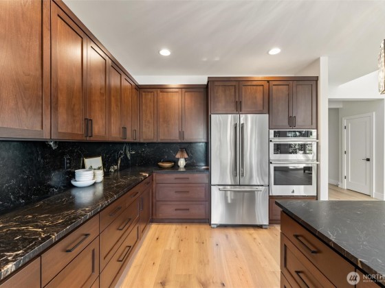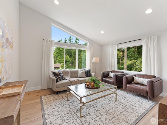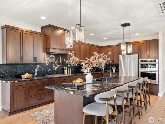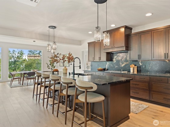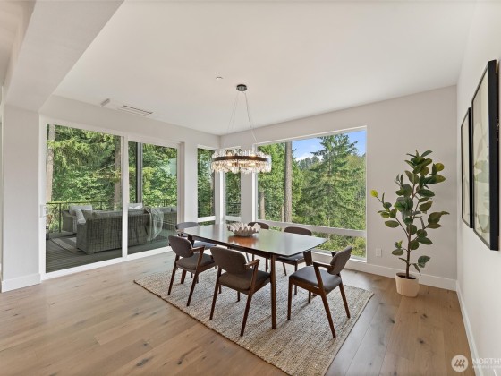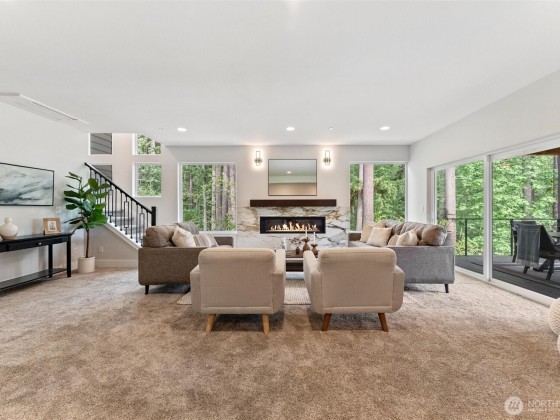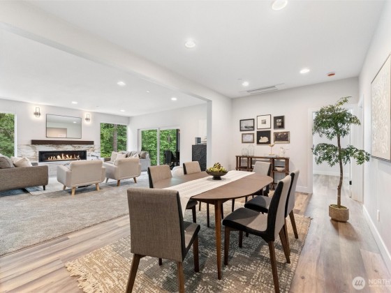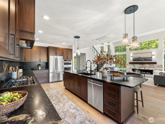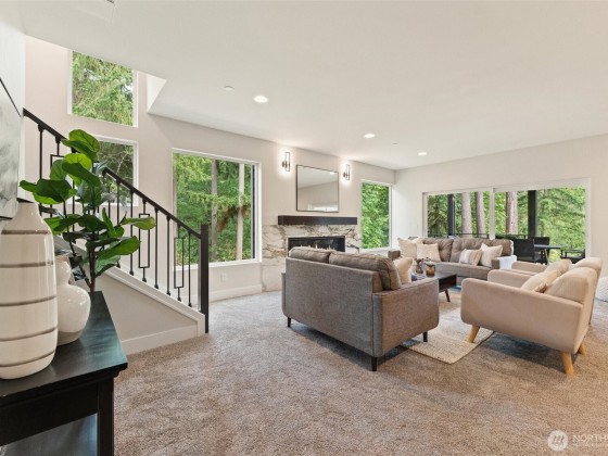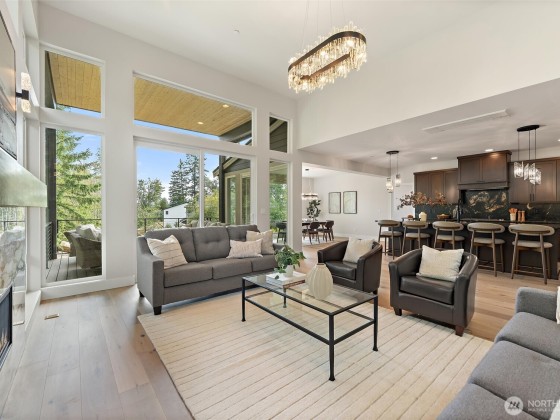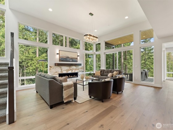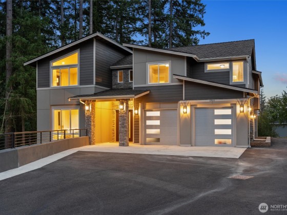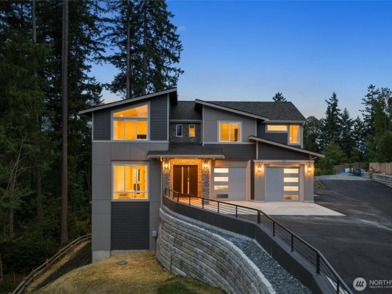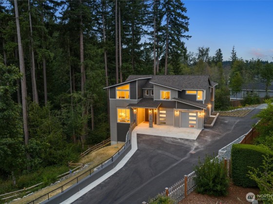 Your private sanctuary close to the city, yet a world away. This home offers the perfect blend of beauty, connection, and seclusion. Just minutes from Bellevue, Seattle, and Sea-Tac Airport, the convenience of city living meets the serenity of nearly two wooded acres—take a stroll through your own private pristine forest with peaceful views. Soaring ceilings & oversized windows flood the open living spaces with natural light, while custom walnut cabinetry, textured granite countertops, & porcelain slab gas fireplaces bring warmth & elegance into every room. The lower level offers flexible living—ideal as a private apartment or guest suite. Come experience the space, the light, & the stillness—right in the heart of it all.