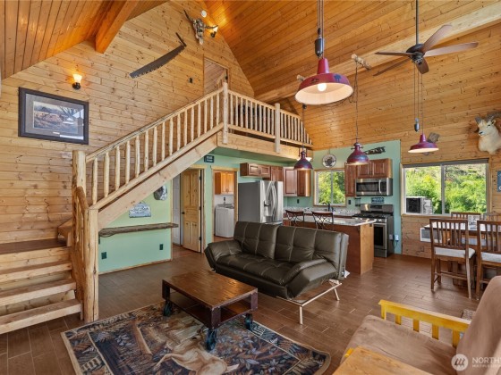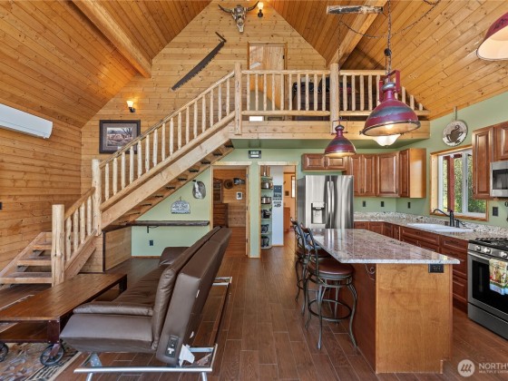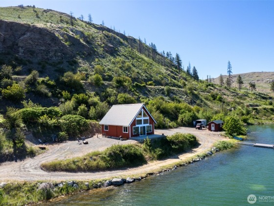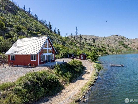 1,152 sq ft lakeside cabin on 10+ acres steps away from your private beach w/ dock on the shores of Alkali Lake—renowned for its mineral-rich, healing waters. Waterfront living made easy behind the gated community with exclusive access-not open to the public-electric motors only. Inside this 2-bed/1-bath home, you'll find vaulted ceilings, a main-floor primary & spacious loft. Enjoy morning coffee on the patio, afternoons kayaking, fishing or going for a swim w/ quiet evenings overlooking the water—less than 10 miles from Omak! 2 RV hook ups w/ multiple outbuildings provide space for overflow guests, lake gear or ATVs. Whether you’re looking for a full-time residence or a weekend escape, this cabin is set up for ease of comfort & usability.
