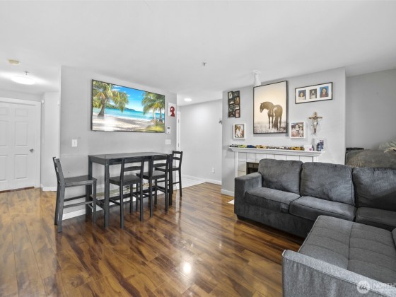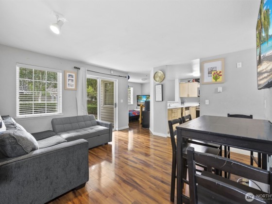 Charming condo 2 bedroom, 1 bath ground floor unit has everything you need for easy living. offering privacy and unbeatable location step into warm tiled entryway with coat closet leading to spacious living room featuring a cozy fireplace sliding glass door to your private patio .the kitchen boast a breakfast bar for casual dining while the full-sized washer and dryer are tucked into the hallway with built-in shelving for added convenience the bathroom connect to the primary bedroom which include a generous walk in closet plenty visitors parking you get 1 parking spot and 1permit min from I5 AND 405 everything you need ideal for first time home buyer, downsizers or savvy investors seeking peace without sacrificing accessibility