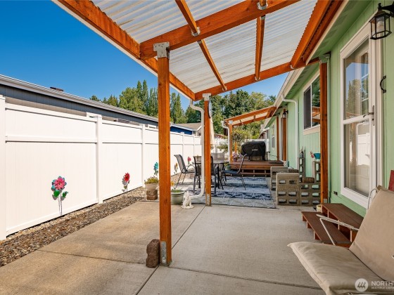 Discover the perfect blend of comfort and convenience in this charming well cared for manufactured home located in the sought after 55+ Portal Creek Park in Ferndale. At 1,596 square feet, this inviting home features 3-bedrooms PLUS a den, 2 full bathrooms and boasts a completely fenced yard for added privacy and security for peace of mind. Enjoy outdoor living on the covered deck and patio, while the large fully insulated garage provides ample parking, storage, and workspace. With beautiful fruit trees adorning your low maintenance yard and less than a mile from Interstate 5, you’ll relish both tranquility and easy access to nearby amenities. Don’t miss out on this exceptional opportunity to call this delightful home your own!