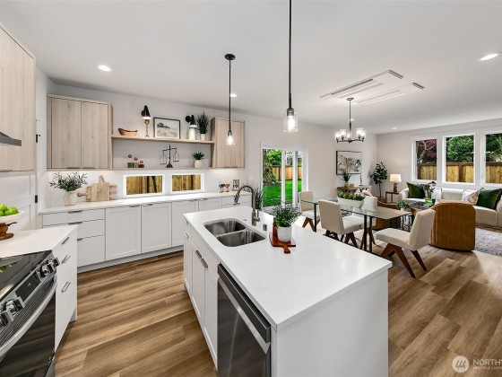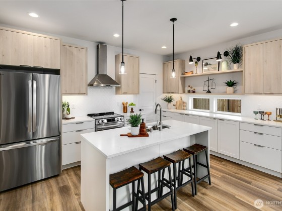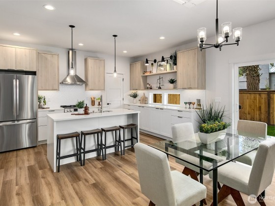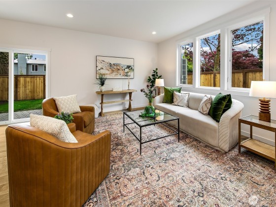 Idyllic Interurban Living! Beautiful, new home w light-filled spaces, high ceilings & modern finishes! Open concept living/dining create seamless flow. Stunning kitchen w quartz countertops, generous island, slow-close cabinetry, LG appliances. Fenced yard w lawn/patio for your summer soirees. 3 good-sized bds, full ba, laundry on 2nd level. Striking primary suite w walk-in closet, luxe bath + flex room up (office, nursery, art studio, exercise room). Easy parking/storage right off kitchen. Sited on a designated 'Healthy Street’, across from park & one block to the Interurban Trail, this gem hits all the marks! Your dream home in a picturesque setting - close to dining, shopping, transit, freeways. Come see what all the excitement is about!