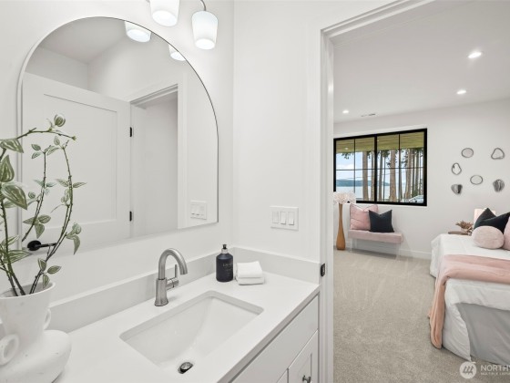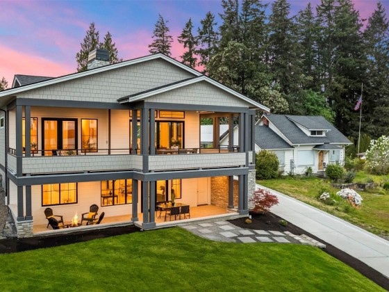 A rare opportunity for New Construction with panoramic water and mountain views, just steps from the heart of Gig Harbor. Thoughtfully designed and custom-built to the highest standards, this home blends timeless Craftsman architecture with elegant, modern finishes. The main floor features a luxurious primary suite with direct access to an expansive, heated covered deck, wide-plank oak flooring, and a chef’s kitchen outfitted with Fisher & Paykel appliances and rich stone accents. The lower level offers guest suites with views, a stylish entertainer’s bar, and seamless indoor-outdoor living. Privately tucked away, a fully equipped one-bedroom ADU with kitchen and laundry provides flexibility for guests or rental income.