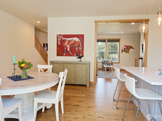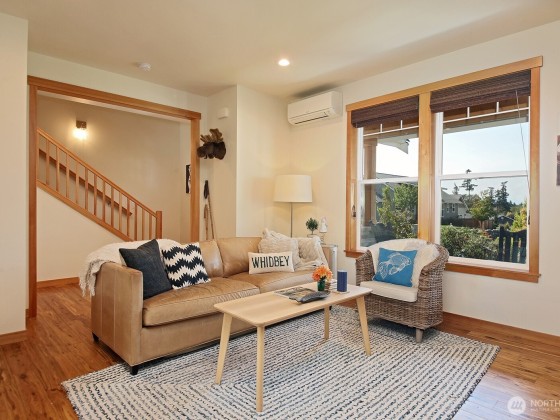 Perfect modern farmhouse style construction, meticulously cared for & maintained... and a lovingly established landscape w screening that creates a sense of privacy--all rolled into one! Step inside to a home that feels like one of your favorite home catalogues! Real hardwood floors made of eucalyptus throughout the main floor and primary suite, wool carpet & luxury vinyl plank complete the flooring. White cabinetry, stainless appliances and a mostly open floorplan feels fresh and like a brand new home! Primary Bedroom and two additional bedrooms or bedroom and office upstairs plus storage. Ductless mini splits for heat & AC. A beautiful spot to call home and enjoy for years to come. Close to Freeland and all of the amenities you need!