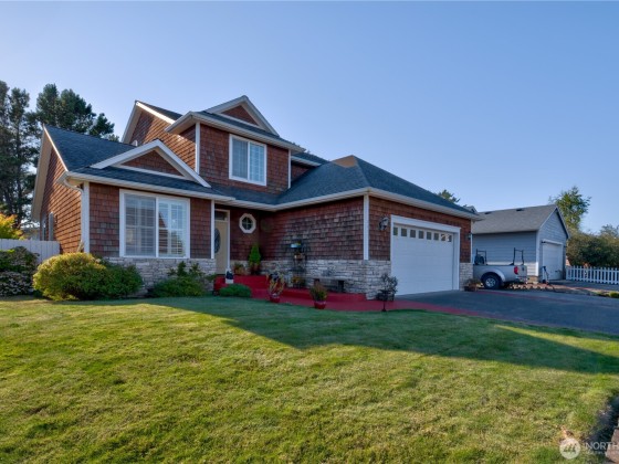 Beautiful Home in Long Beach ready for new owners! Lovely inside and out, and close to golfing, the beach, dining, and fishing. So many activities to choose from when you are enjoying the quiet elegance of this home. Hardwood floors and granite counters. Rock gas fireplace in the open living room, and primary bed and bath on main level. Upstairs features an open bonus area where you can take in all activities in the home, and work or play as you wish. 2 bedrooms and 2 baths up. Gorgeous entry area outside in front, and in back a deck that runs the complete expanse of the home. Steps to the yard below offers lovely plantings, and fruit trees, strawberries and raspberries. All fenced for your privacy. 2 car garage and RV parking.
