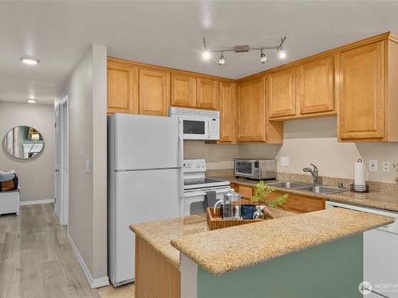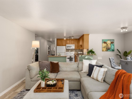Welcome Home to this light and bright two bed, two bath corner unit with zero-step entry. This ground-floor unit offers easy access from two parking spots directly to your sliding glass door. This cozy condo features a kitchen with bar, open great room, luxury laminate flooring and a full-size in-unit laundry. The building was recently refreshed with new siding, paint and roof! Enjoy a fantastic community with green space, covered outdoor area, sport court, gym, and clubhouse. Pet-friendly and conveniently located near Thrasher's Corner shopping, parks, bus lines, and in the highly rated Northshore School District.