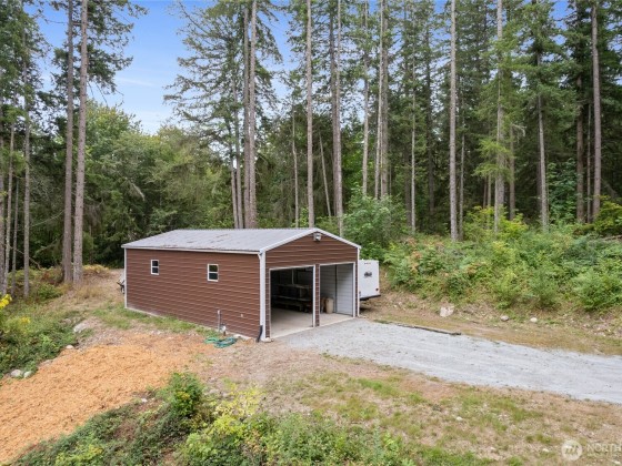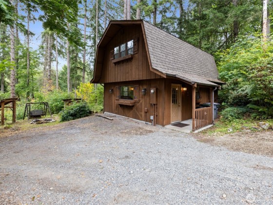 This one-of-a-kind custom home sits on 6.61 gorgeous acres and comes with a 932sq/ft cabin, and new 960sq/ft shop with water & electricity. The moment you step onto this property you feel the stress of daily life fall off your shoulders as you bask in the mature NW forest and listen to the calls of the birds and babbling of the seasonal creek. The home is constructed of quality cedar and with its wraparound country porch it fits the serene setting perfectly. Some of the new updates to the home include flooring, paint, countertops, primary bath & modern light fixtures. There is a rustic barn near the orchard. The driveway runs through the property connecting the dual entrances for easy access. Absolutely stunning property!