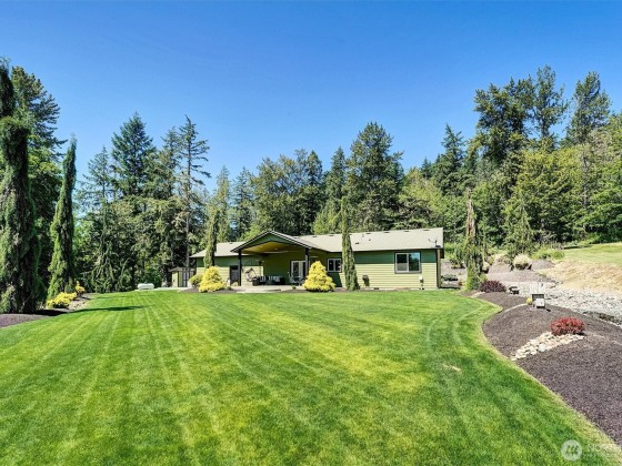 Impeccable rambler w/million dollar view on 5 serene acres! Built in 2015, this 3 bed/2 bath home is meticulously maintained & designed for comfort, efficiency, & connection to nature. Enjoy open living spaces w/vaulted ceilings, custom details, & high-end finishes throughout. The kitchen features granite countertops, double oven, pantry, large eat-in island, & flows seamlessly into the dining & family rooms. A true entertainers dream. The primary suite offers a private escape w/panoramic mountain views. Energy-conscious, low-maintenance, & thoughtfully designed—this home blends timeless style w/modern ease. RV parking, generator, & oversized firepit area make this a can't miss generational property! Lots of room for a detached garage/shop.