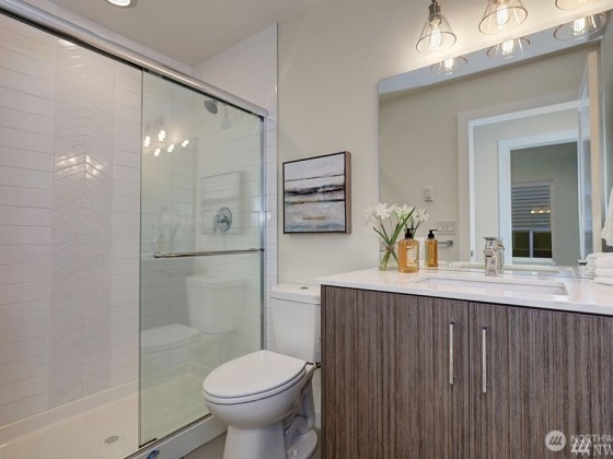 Better than new townhouse-style condo in the Highlands neighborhood of Kirkland. Lower entry level features a 2 car attached garage, a bedroom, bath and living room with terrace (could be ADU), main level with an open great room, huge kitchen with quartz counters and great stainless appliances. Plus an office, walk-in pantry and a half bath. Fireplace in the great room, along with sliding doors to a heated balcony. 3 bedrooms and 2 full baths plus a conveniently located laundry on the top floor. Air conditioning. Priced below comps for a quick sale. Walk to the Google campus and new Urban shopping center. Close to freeway and the new transit center. Close to the lake. Priced below comps. Motivated seller who wants an offer!