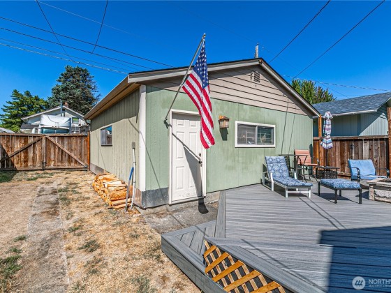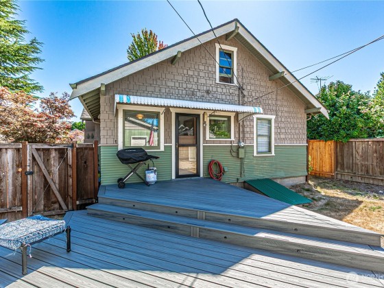 Charming 2-bedroom Craftsman with timeless character! Original wood floors, natural light & cozy living spaces welcome you in. The kitchen features eating area with plenty of room to cook & gather. A partially finished attic with pull-down ladder offers great potential for a home office, studio or future expansion. Step outside to a fabulous Trex deck with firepit (gas or wood) overlooking fully fenced backyard--perfect for pets, play & gardening. Oversized 2-car garage with alley access offers abundant storage/workshop space. Shed included. RV Parking. This is a rare gem that combines craftsman beauty with room to grow-don't miss it! Bonus! Electrical rewired 9/2025. Side sewer replaced prior to sellers ownership (approx 8-10yrs).