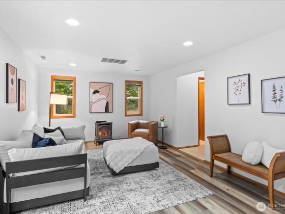 Buyer Bonus: 1% rate reduction for 12 months! Nestled in a peaceful wooded setting, this spacious home offers room to relax and gather with two living rooms plus a flexible bonus room ideal for a home office, playroom, or media lounge. Fresh interior paint, new carpet, and luxury vinyl plank flooring create a warm, updated feel throughout. The refreshed kitchen features newly painted cabinets with stylish brass hardware, and the remodeled primary bath showcases a beautifully restored 100-year-old tub. Outside, enjoy a fenced side yard, lush landscaping, and fruit trees. With RV/boat parking, ample space for a future shop, and proximity to Woodinville and commuter routes, this home blends comfort, function, and privacy.