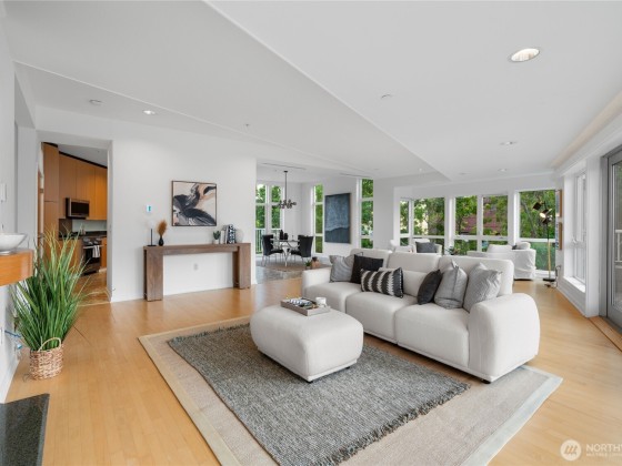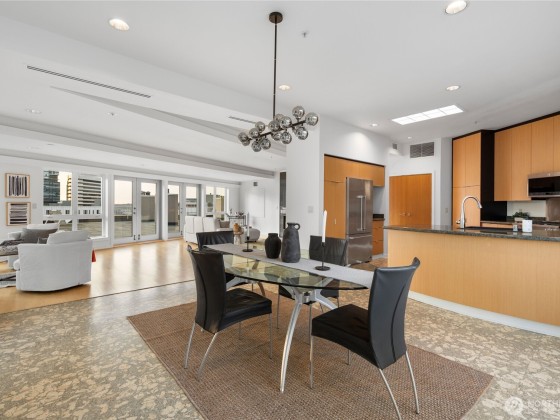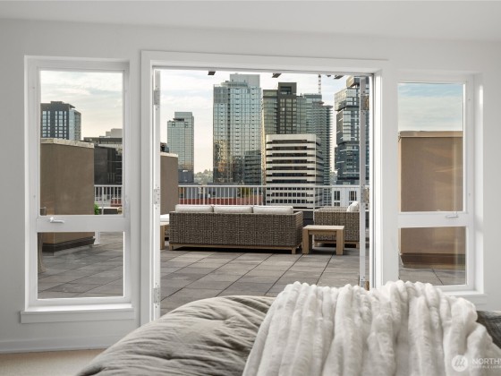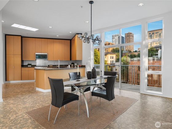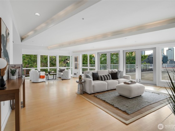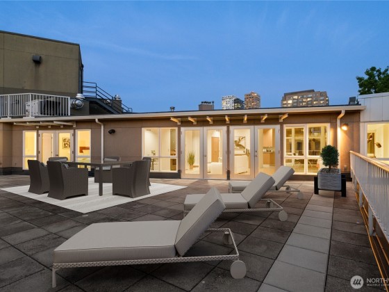 For the first time on the resale market, a refined penthouse unlike anything else awaits, showcasing a rare 1,500 sq. ft. private rooftop deck with sweeping views of Seattle’s skyline and Lake Union. Soaring 9’5” ceilings, skylights, and floor-to-ceiling windows flood this home with natural light, highlighting maple hardwoods and elegant finishes. Its chef’s kitchen boasts premium appliances, including a Miele gas range, while its spa-inspired ensuite offers a soaking tub, walk-in, and custom closet system. Enjoy seamless indoor-outdoor living, a new HVAC system, two secured parking spaces, and a Walk Score of 99 with premier dining, shopping, and nightlife just steps away. No rental cap!