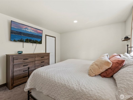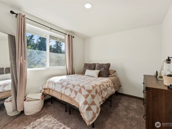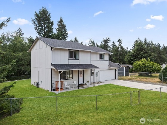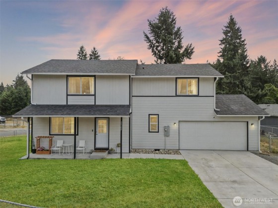 This stunning like-new 2-story home on a quiet cul-de-sac with 1,656 sq ft, 2 beds + office/optional 3rd bed, 2.5 baths, bonus loft, 2-car garage & RV parking on a shy ¼ acre corner lot! Open-concept Great Room with laminate flooring, dining area with back patio access, and a modern kitchen featuring slab granite, stainless appliances, walk-in pantry & breakfast bar. Upstairs: spacious primary suite with walk-in closet & full bath, bonus loft, utility room, guest bed/bath and optional 3rd bed/office. Mini-split heating & cooling. Fully fenced yard backs to greenbelt with mature trees. Walk to the community park and enjoy easy access to amenities, major freeways & 25 mins-JBLM East Gate! New builds coming to lots right across street.