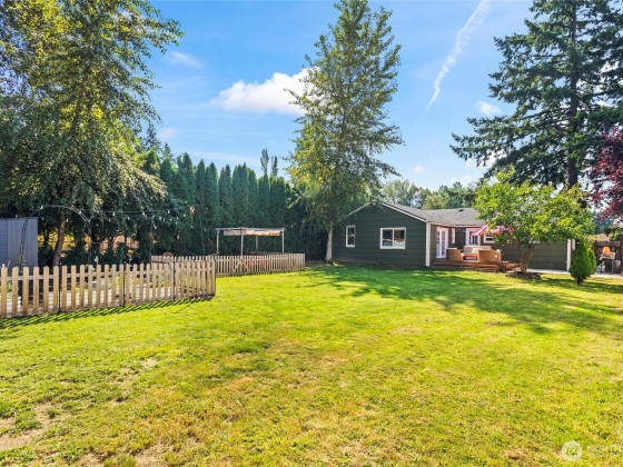 Set on a peaceful, level lot with plenty of room to expand, this remodeled single-story home blends modern upgrades with a warm, inviting feel. Inside, an airy, light-filled layout showcases elegant flooring, spacious living & dining areas & a sleek kitchen with updated shaker cabinets, granite counters, & stainless steel appliances. Primary suite opens through french doors to a private deck perfect for soaking up the morning sun or unwinding in the evening. With 4 additional bedrooms & a half bath that could easily convert to a full, there’s space for all. The fully fenced backyard borders a quiet alley, offering access for a future garage, shop, or ADU. Just minutes from shopping, freeways & JBLM, this home delivers comfort & convenience.