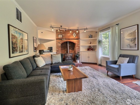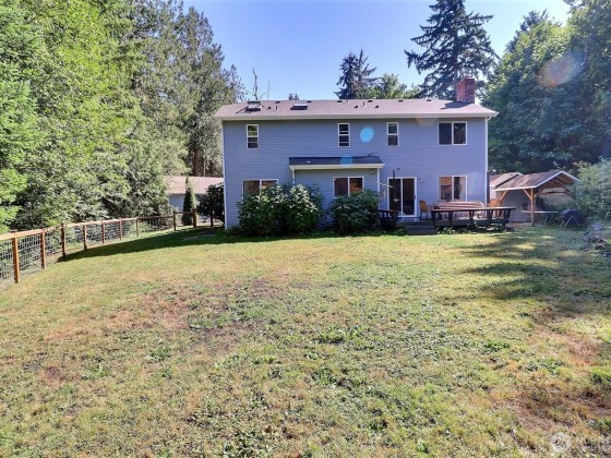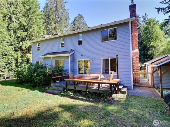 Just around the corner - yet a million miles away your reprieve begins at the headway of this serene 2+acre retreat. Settle in this classic 4bd 2.5bth 2 story offering elegant & inviting formal living & dining space, remodeled kitchen fit for todays most discerning baker, chef or preserver. Connected family rm w/custom built ins & gas fireplace. Upstairs the Primary offers king size living, walk in closets & spa bath. Convenient 2nd floor laundry, full bath & 3 more bedrooms present this homes well rounded utility. 500 sqft insulated shop w/wood fired heat is prime for all ways of hobbying. More to love outside - back deck overlooks secure raised gardens & sprawling parklike grounds. Just minutes to local dining, pleasant beach & ferry.