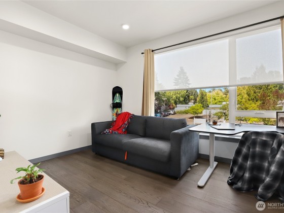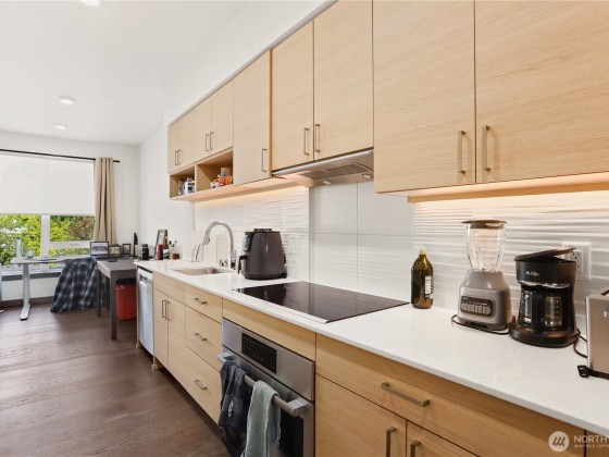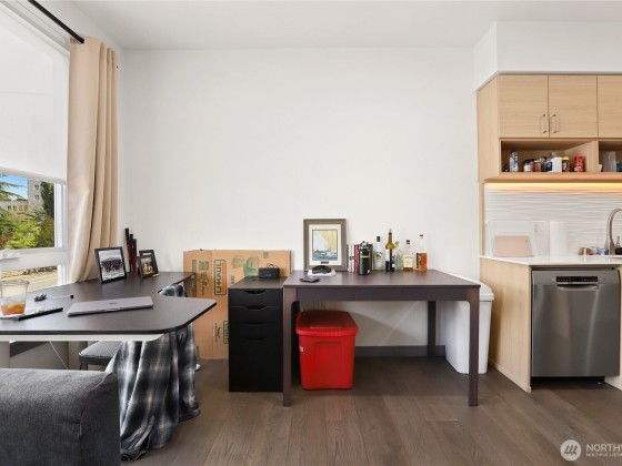 This stylish one-bedroom condo offers the perfect blend of modern comfort and urban convenience in the heart of Kirkland. Soaring 9’ ceilings and an oversized window fill the space with natural light, while wide-plank hardwood floors and Bosch stainless steel appliances highlight the contemporary design. The open layout is ideal for both everyday living and entertaining. Just minutes to The Village at Totem Lake, shopping, dining, major tech campuses, and Lake Washington schools, this home puts the best of the Eastside at your doorstep. Building amenities include a rooftop deck with sweeping city views, a fully equipped fitness center, concierge services, secure common garage, and one reserved parking space.