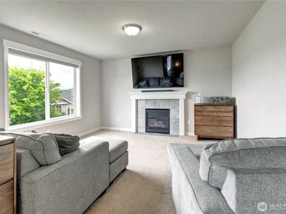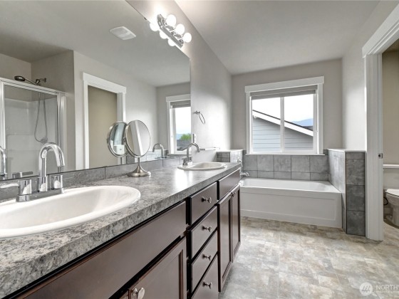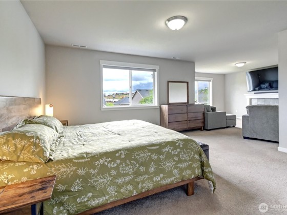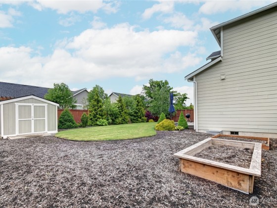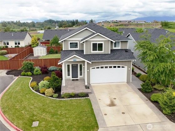 Pride of ownership! Beautiful Summer Sun Estate home on large corner lot great for entertaining w/large patio, garden space, shed & rm for an RV! The home features grand entryway, leading to a great rm concept layout, that includes dining space, living rm w/gas fireplace, open kitchen w/island, granite countertops, stainless steel appliances & tile backsplash. Den/Office space w/French doors adjacent to dining rm. Upstairs the primary bedroom has a hotel suite vibe w/a view of Mtn Baker, seating area w/gas fireplace & electric window shades, walk in closet & large 5-piece bath. Two additional bedrooms connected via a Jack & Jill style bath & laundry rm complete the 2nd floor. Wonderful move in ready home, AC included for warm summer days!