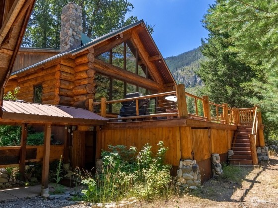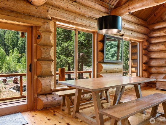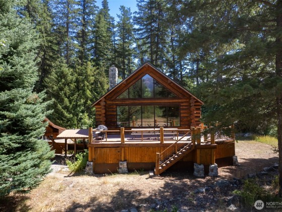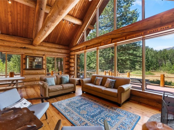 Camp Mazama! Tucked along the banks of the Methow River near Mazama, this peaceful retreat offers direct river access, towering pines & the soothing sounds of nature. Minutes from the Mazama Store, Methow Trails, & backcountry access, it’s perfectly situated for year-round adventure—skiing, hiking, biking, or relaxing by the water. The rustic hand-hewn log home invites gathering with generous windows, river views, and cozy spaces for all seasons. Spend mornings with coffee on the deck, afternoons exploring the mountains & evenings stargazing by the river. A special opportunity for privacy, beauty, and connection to nature in one of Washington’s most beloved mountain communities. (2-bedroom + 2 bonus rooms)