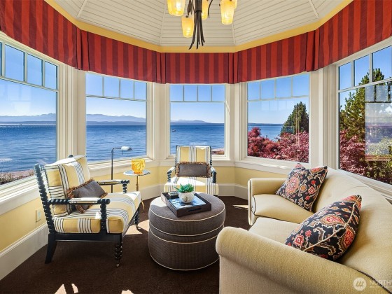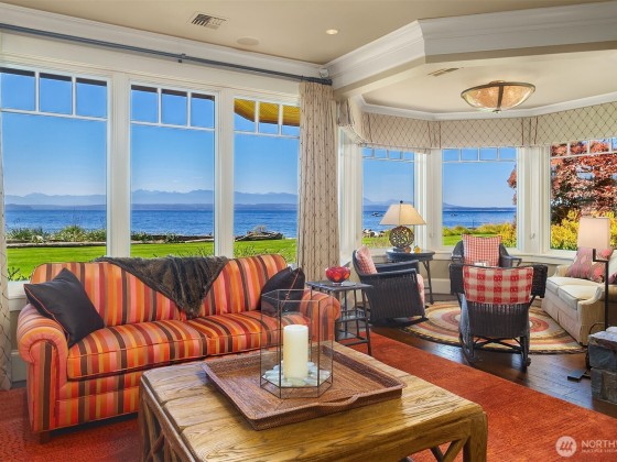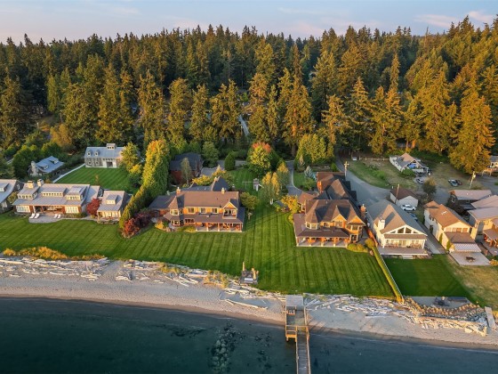 Where timeless elegance meets the sea, with 140 ft of private, no-bank, soft sandy beachfront on iconic Mutiny Bay, framed by sweeping views of Puget Sound and the Olympic Mountains. A refined estate with tasteful curated interiors, and a detached carriage house with additional entertaining space on one plus acre of pristine, gated grounds. Two beautiful structures, 7,000 sqft of exceptional living space, 2,500 sqft of garage and storage. Fully furnished and sold turnkey- an extraordinary offering, on the Islands most coveted shoreline.