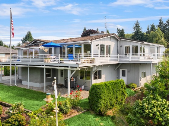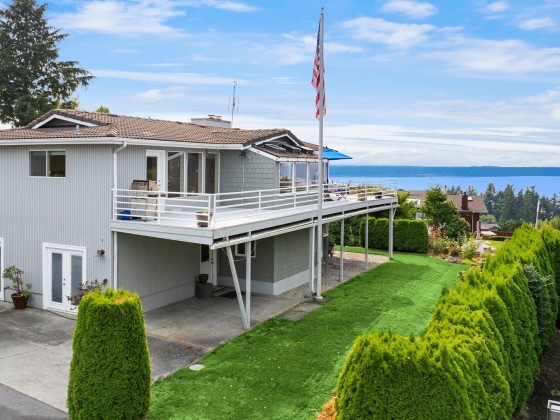 You must see and experience this home to understand how captivating it is! Located on a corner lot, on a quiet dead-end street you'll discover this light & spacious home is all about the VIEWS! One never tires of the stunning, ever-changing panoramas of the Puget Sound & mountains. The main floor offers generous, thoughtful living spaces; a huge primary suite, walk-in closet, full bath, 2nd bedroom & full bath, large laundry room, incredible living room, beautiful dining room & built-ins, a kitchen to inspire ( + large walk-in pantry), all complimented by windows galore, a wrap around deck. Lower level has a family room + a legal ADU with parking. Extra roomy garage w oversize doors & ready for your EV charger. A great place to call home!