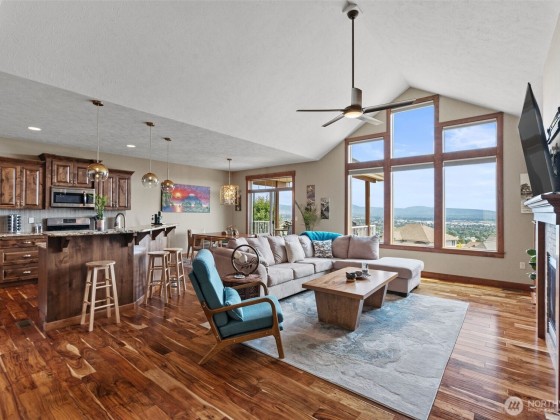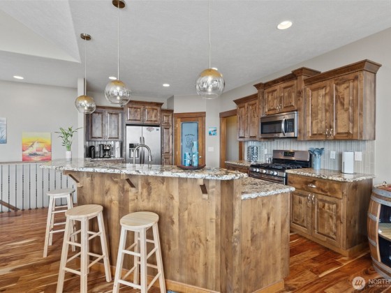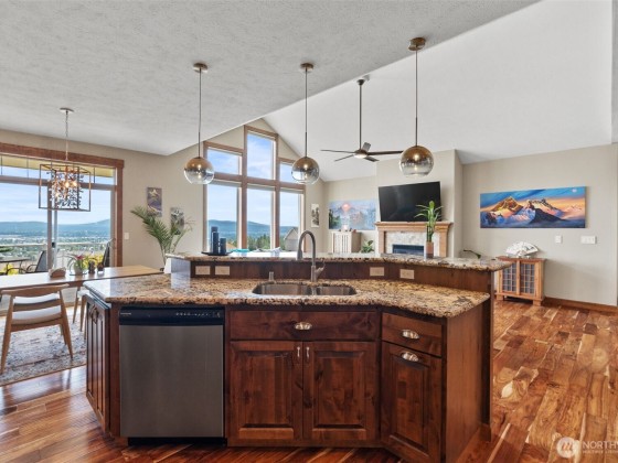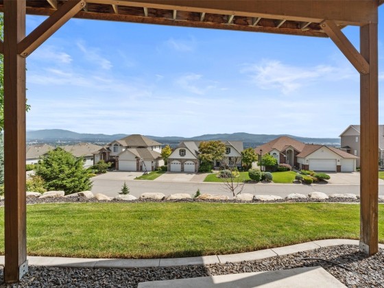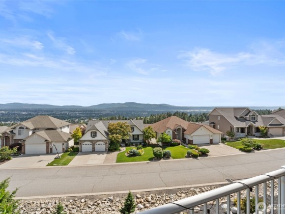 Imagine relaxing on the covered deck, overlooking stunning mountain vistas by day and twinkling valley lights by night. Nestled on a quiet cul de sac in the coveted Northwood community with easy access to Spokane and Coeur d’Alene. Minutes from shopping, dining and the river. Made for luxury, entertaining and single-story living, the great room is ideal for gathering by soaring windows on luxurious floors. Cook with ease with custom cabinets, granite counters and walk in pantry. The en suite primary bedroom is a true retreat with views and a huge walk-in closet. 2 more bed, bath on the main level! Massive daylight basement perfect for entertaining and an in law suite. Lush mature landscaping and a 3 car garage top it off!