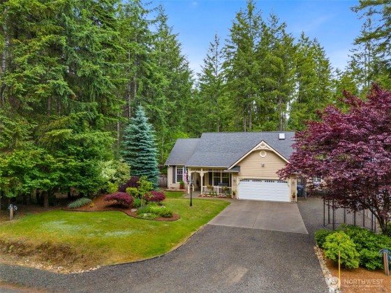 Rare offering with second adjacent lot—includes its own driveway & paid water connection! Ideal for privacy, future build, or resale. Beautifully maintained 3-bed, 1.75-bath home in Lake Cushman golf course community! Open layout with abundant windows & skylight letting in lots of natural light. Enjoy the front porch swing or unwind under the backyard gazebo. Vaulted ceilings in the living room & primary suite, coffered ceilings in 2 bedrooms, and stainless appliances. The primary ensuite has a 5-piece bath with skylight. Includes washer/dryer, whole-house generator, sprinkler system, & shed with electricity. Landscaped & paved. Access to private parks, boat launches, and community security. Close to Olympic National Park and Hoodsport.